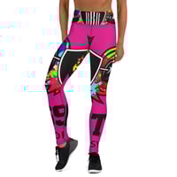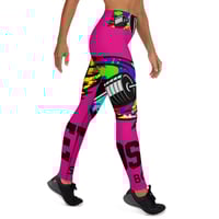 BOSSFITTED Neon Pink and Colorful Logo AOP Yoga Leggings